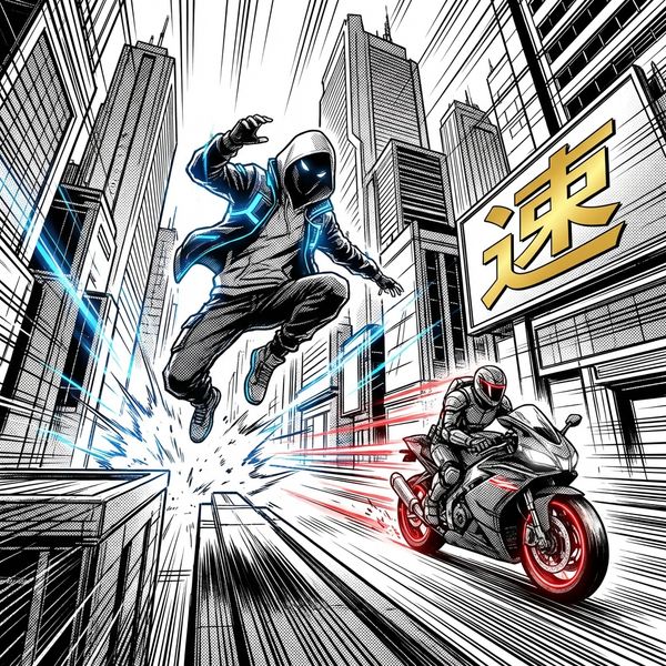 Features bold, impactful linework and sharp, often jagged, edges, coupled with high-energy compositions that convey constant motion, urgency, and explosive power.